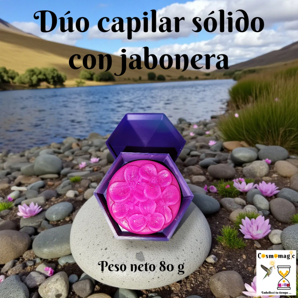 Este dúo capilar combina shampoo y acondicionador en un único formato sólido. Ideal para viajes o uso diario, contribuyendo a la hidratación, suavidad y brillo natural del cabello. Libre de sulfatos, parabenos, petrolatos y siliconas, utilizando ingredientes naturales.