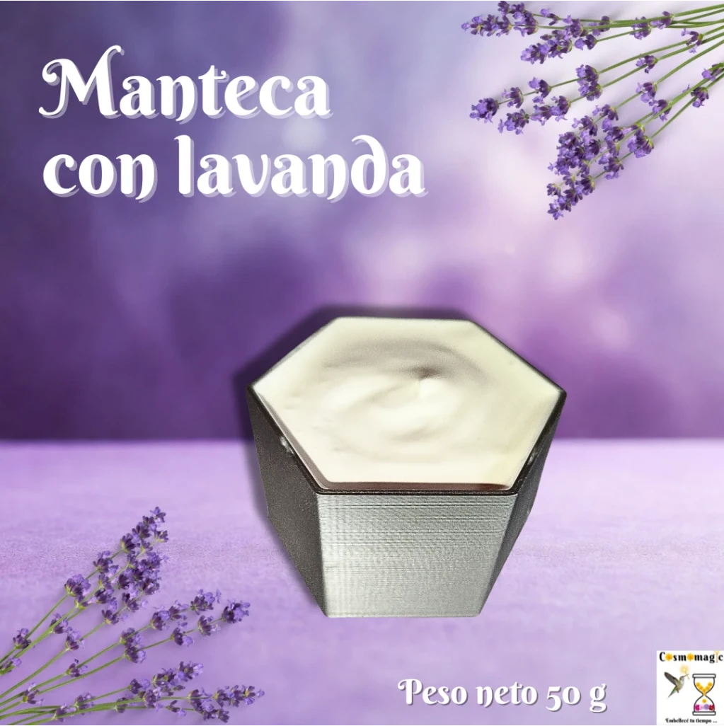Esta manteca de lavanda es un concentrado oleoso que contribuye a hidratar y proteger las zonas más secas. La combinación de las mantecas de karité, cacao y caléndula, junto con los aceites de almendras y coco, aporta una barrera lipídica que ayuda a suavizar la textura cutánea y mantener la elasticidad natural. La incorporación del aceite esencial de lavanda contribuye en este cuidado, aportando sus componentes antioxidantes que ayudan a mejorar la apariencia de la piel y favorecen una sensación de bienestar y confort. Libre de sulfatos, parabenos, petrolatos y siliconas, utilizando ingredientes naturales.